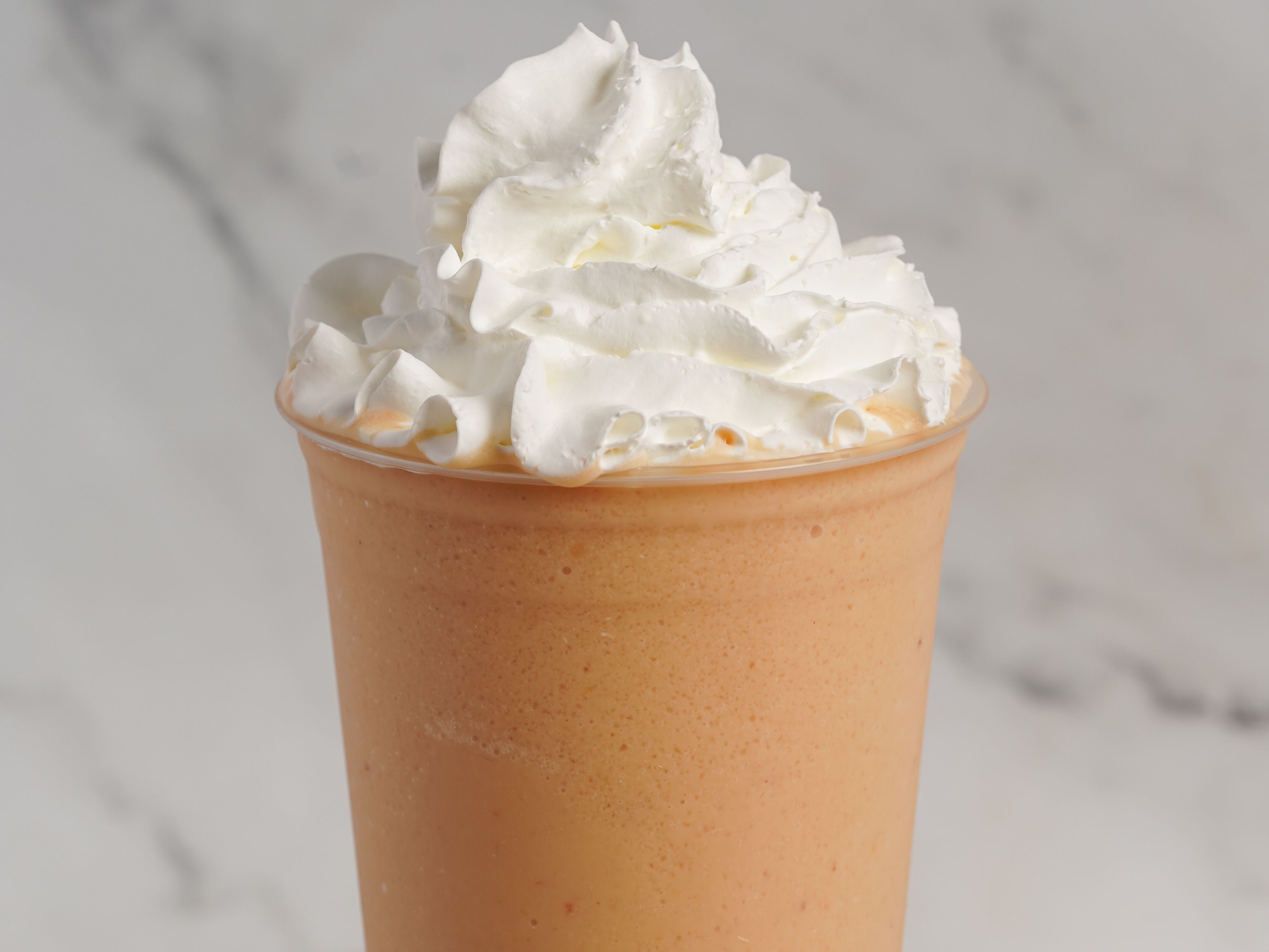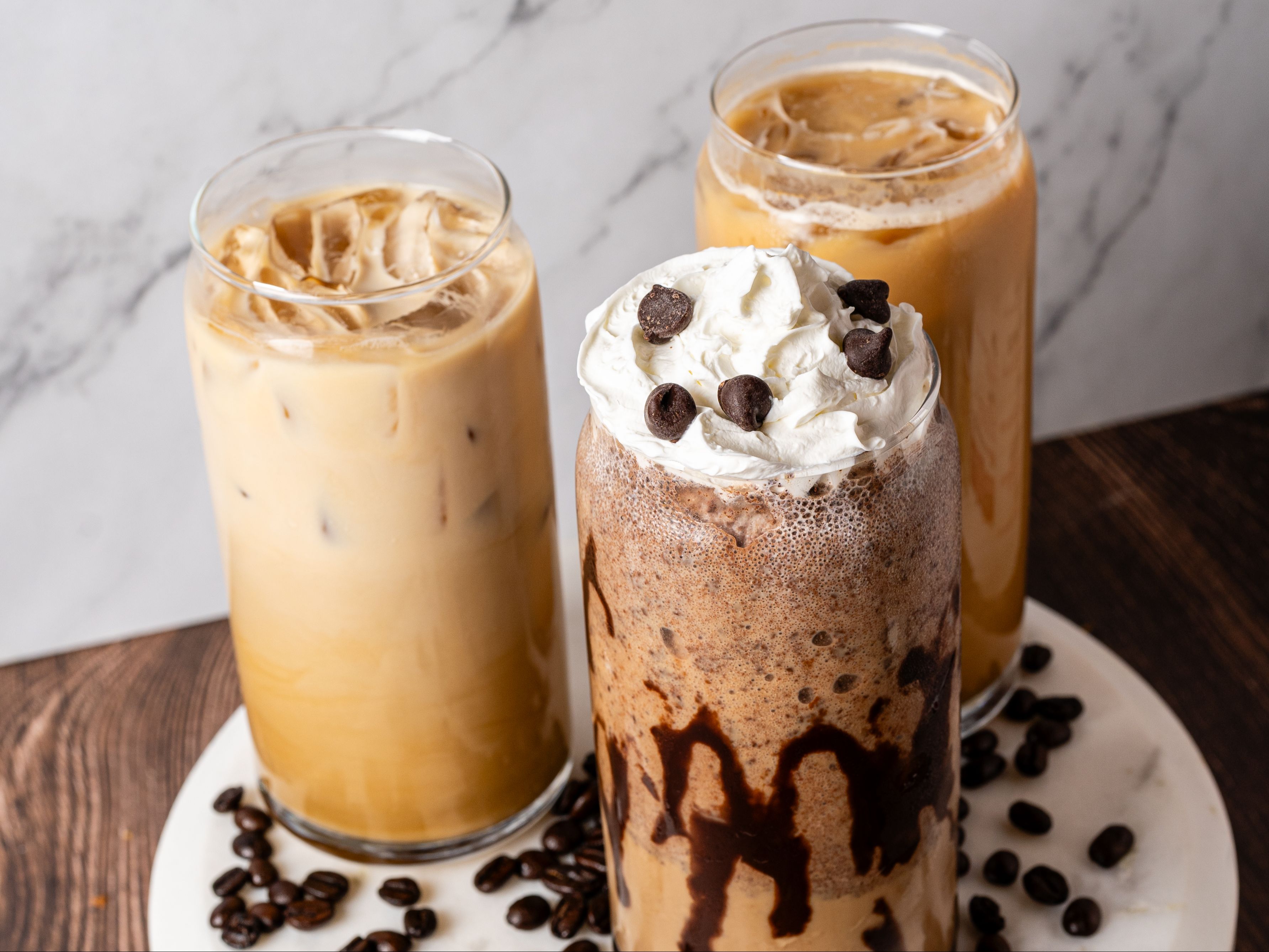 Frozen iced cappuccino, ice cream, & white chocolate.