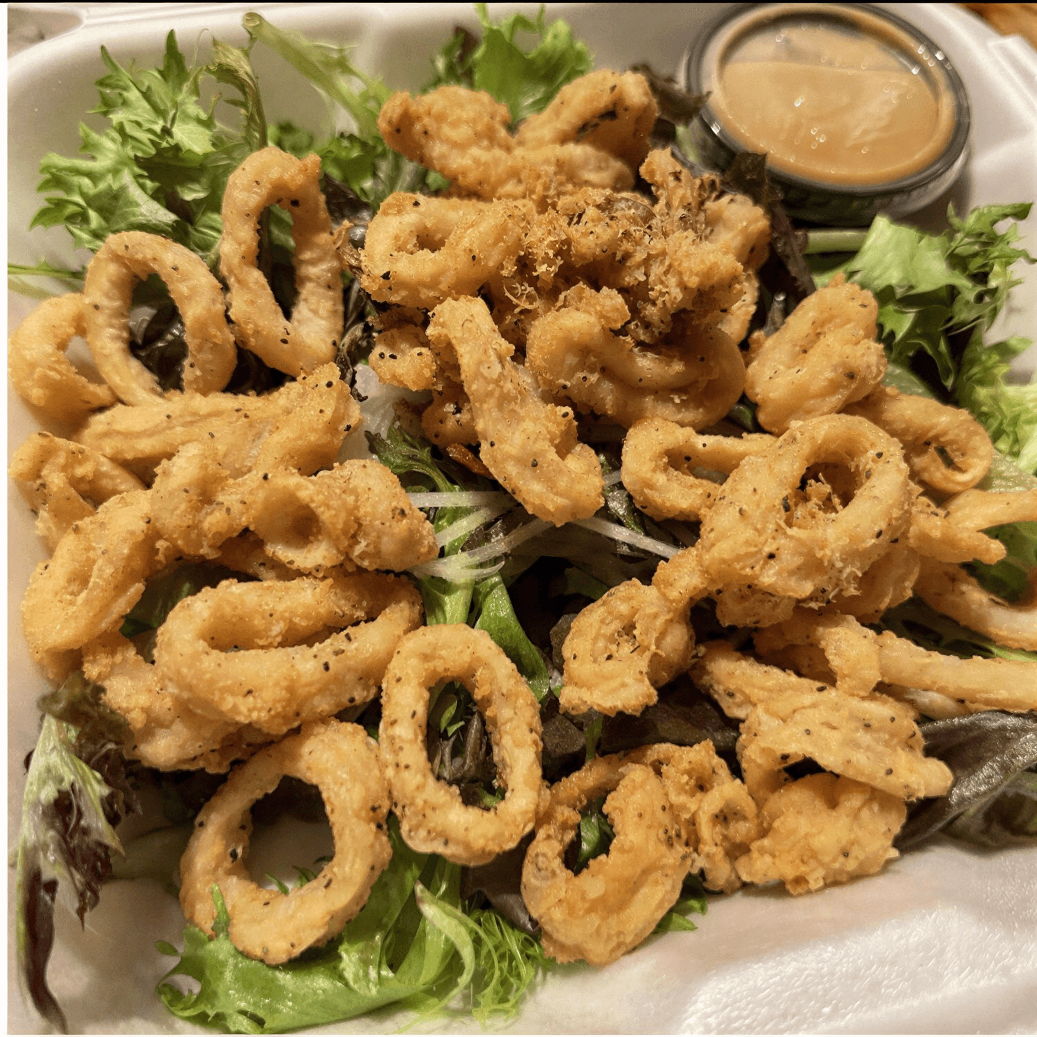 Tender calamari, tossed in seasoned flour and fried golden brown and served with a lemon aioli