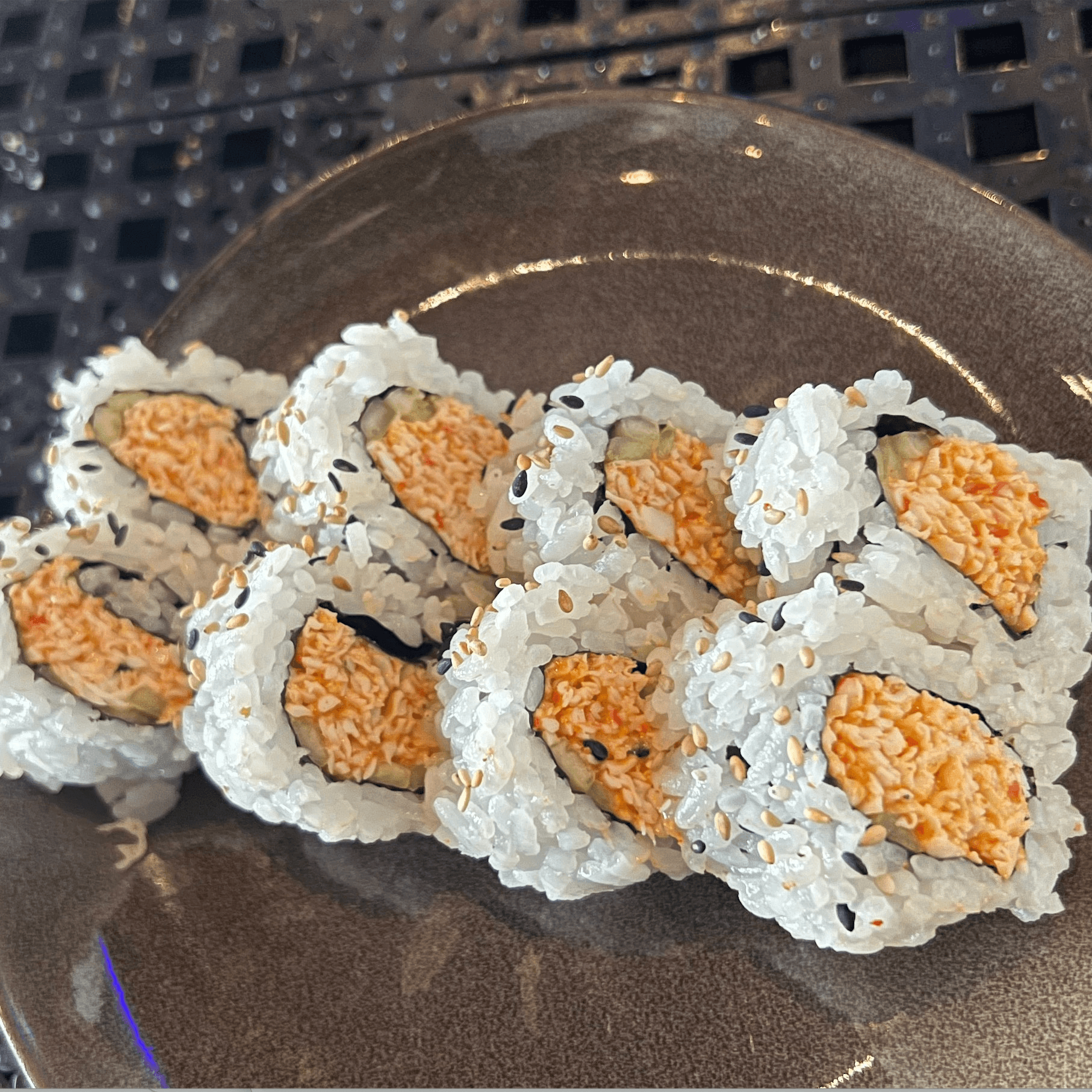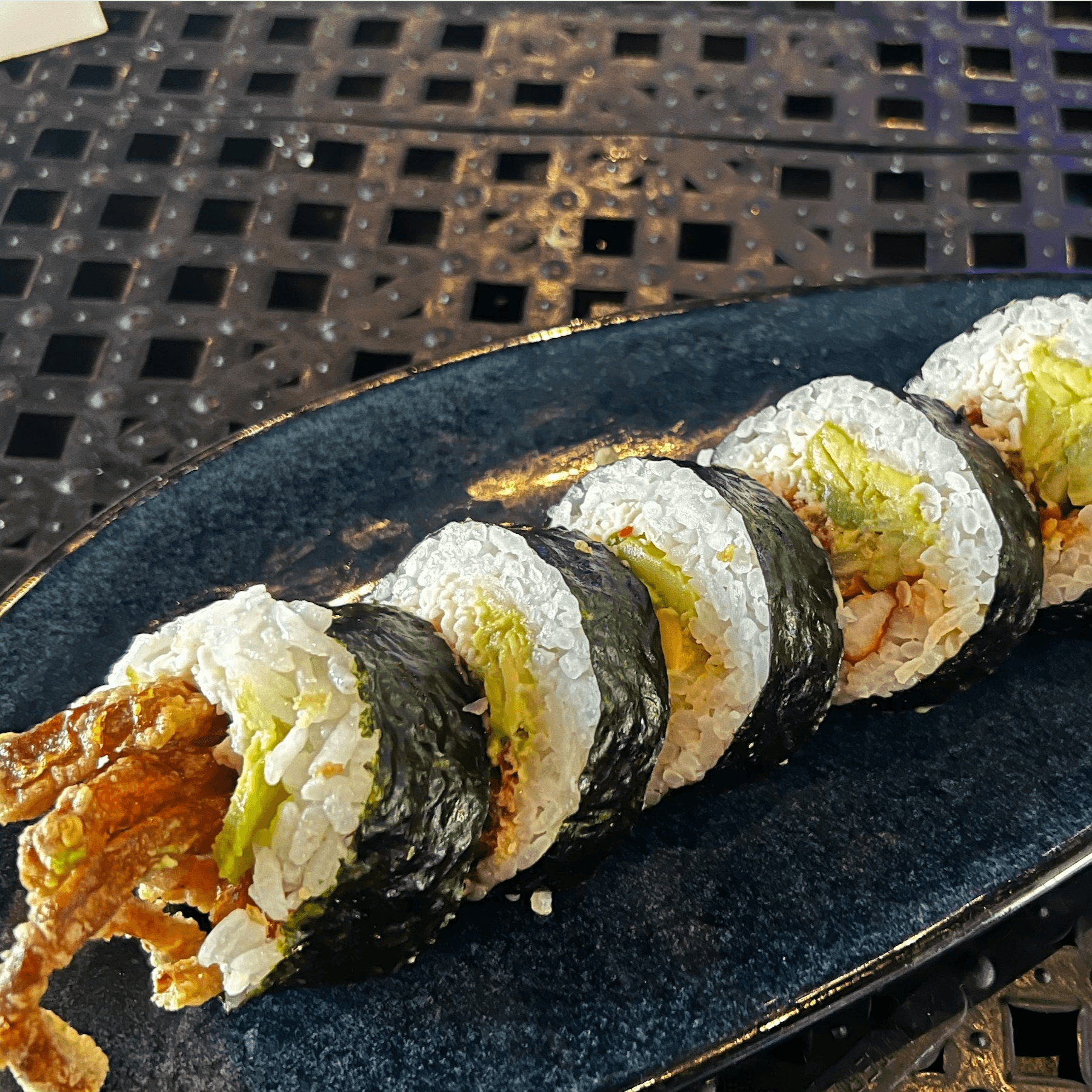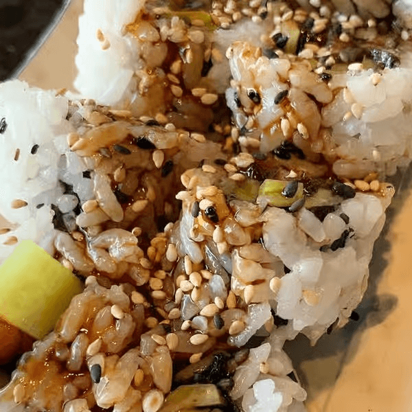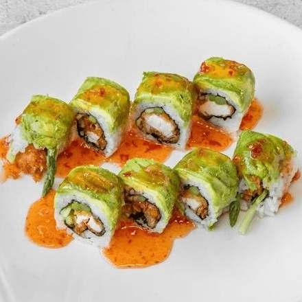 Panko shrimp, spicy crab and cucumber inside topped with eel and avocado sweet soy glaze