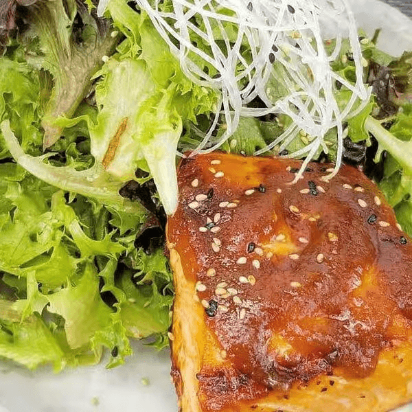 Charbroiled salmon fillet in a light miso glaze