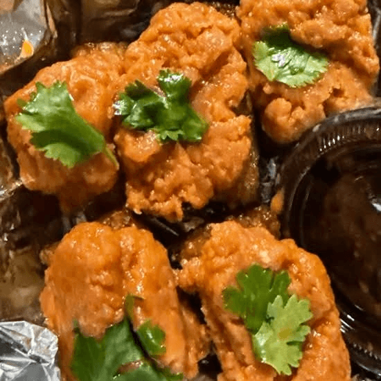 These foods are served undercooked or raw. Consuming raw or undercooked food may increase your risk of foodborne illness. Fresh tuna mixed with cilantro, avocado, jalapeños, and sriracha wrapped in a crispy wonton shell