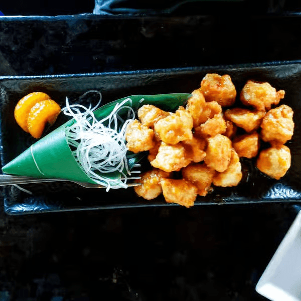 Diced chicken breast, coated with tempura and served with a sweet chili, soy & fresh orange juice sauce